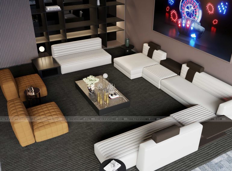 Với nhiều năm kinh nghiệm trong lĩnh vực thiết kế và thi công nội ngoại thất, các sản phẩm thiết kế của V-Home rất đa dạng, từ các công trình nhà ở dân dụng, các căn hộ chung cư, nhà hàng, khách sạn đến văn phòng… Trong bài viết này, V-Home xin giới thiệu đến quý khách hàng một sản phẩm thiết kế hoàn toàn mới lạ mà các kiến trúc sư V-Home mới hoàn thành, đó là công trình thiết kế câu lạc bộ Pocker cực chất tại trung tâm thành phố Hà Nội, hứa hẹn trong tương lai sẽ là một trong những điểm đến thu hút người chơi yêu thích bộ môn thể thao trí tuệ đang rất được ưa chuộng hiện nay.