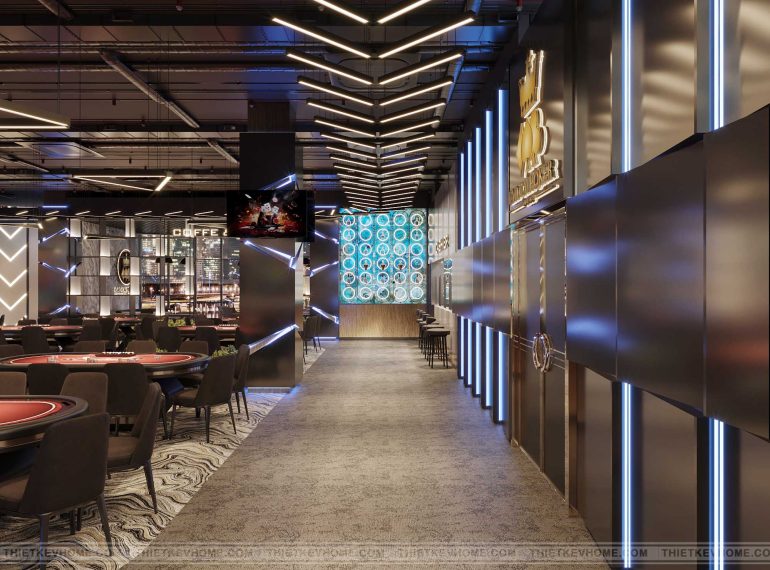 Thiết kế nội thất khu vui chơi cao cấp Poker tại Lào Cai phong cách hiện đại. Đây sẽ là địa điểm thuận lợi để các game thủ đến giao lưu và học hỏi., hứa hẹn là một sân chơi lành mạnh và đẳng cấp cho cộng đồng Pocker tại Lào Cai. Chất liệu nội thất được lựa chọn kỹ lưỡng để có một sân chơi với chất lượng dịch vụ được đánh giá cao so với nhiều câu lạc bộ khác.