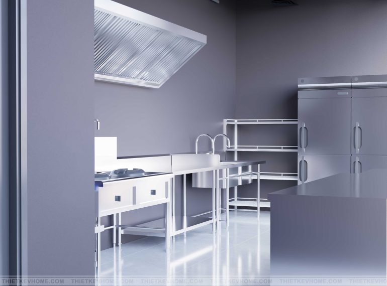 Bếp ăn công nghiệp rất sach sẽ, đảm bảo vệ sinh an toàn thực phẩm và các tiêu chuẩn phòng cháy chữa cháy. Chúng tôi luôn đảm bảo thiết kế đủ các khu vực hút mùi, thông gió và dễ dàng lau chùi sạch sẽ