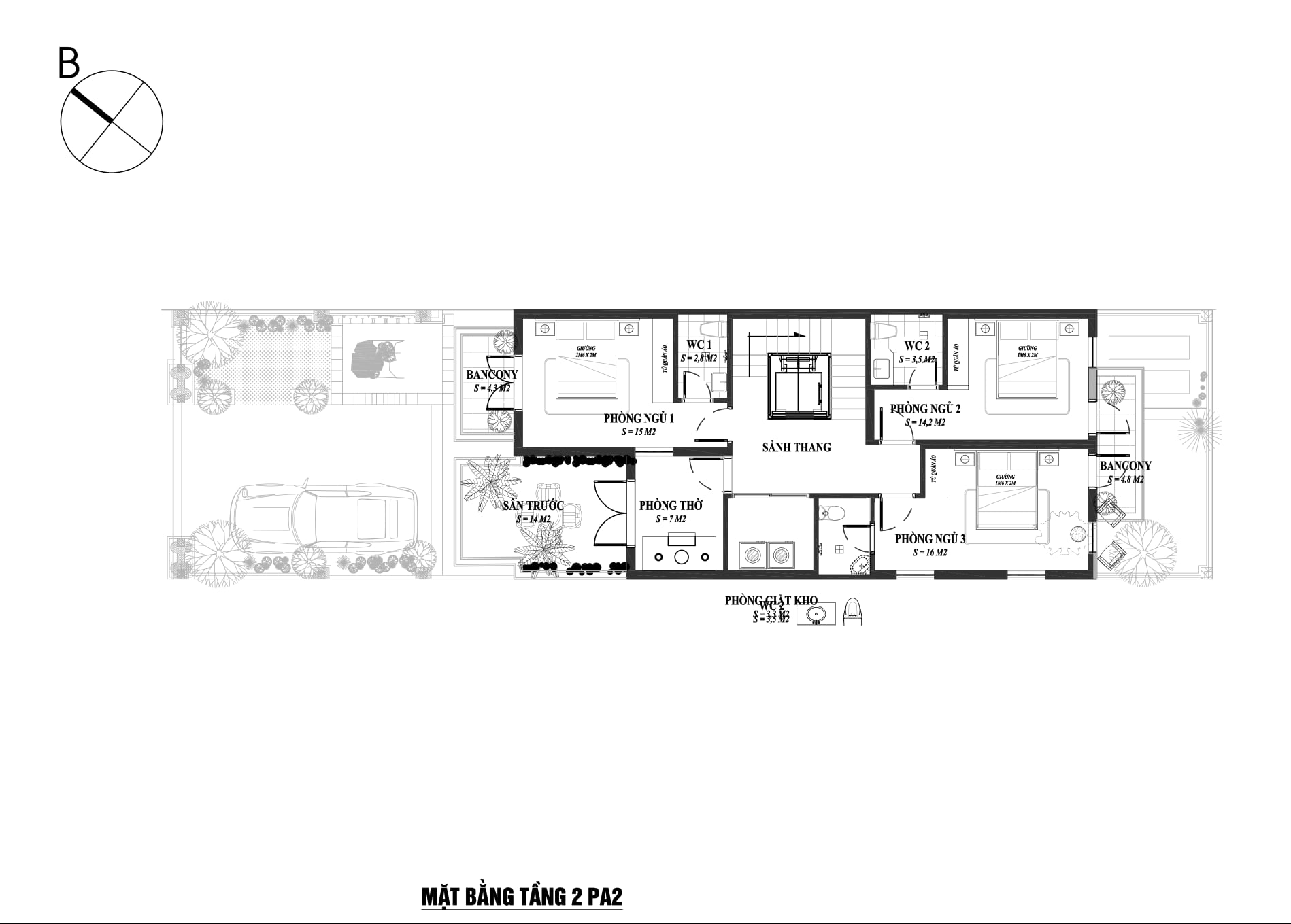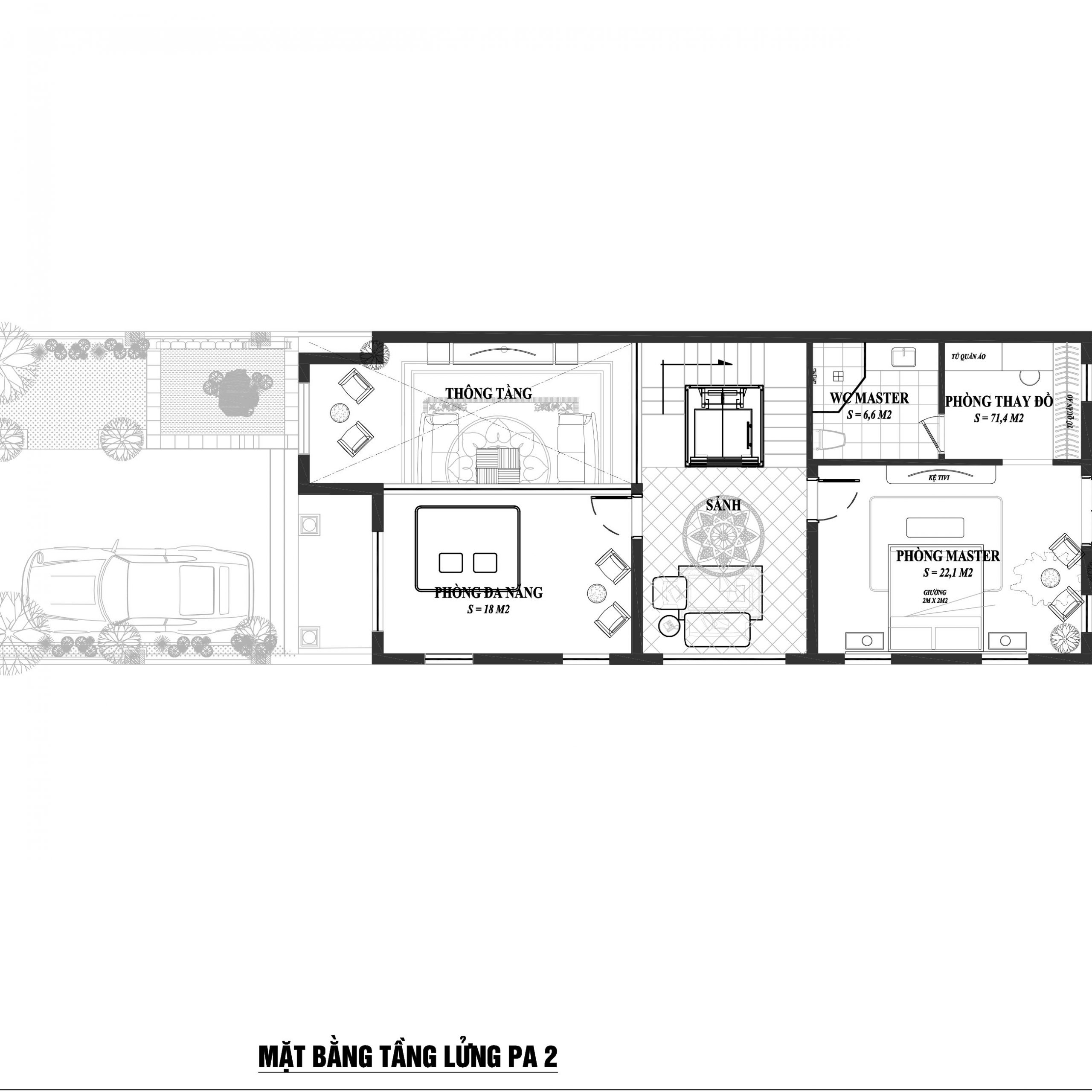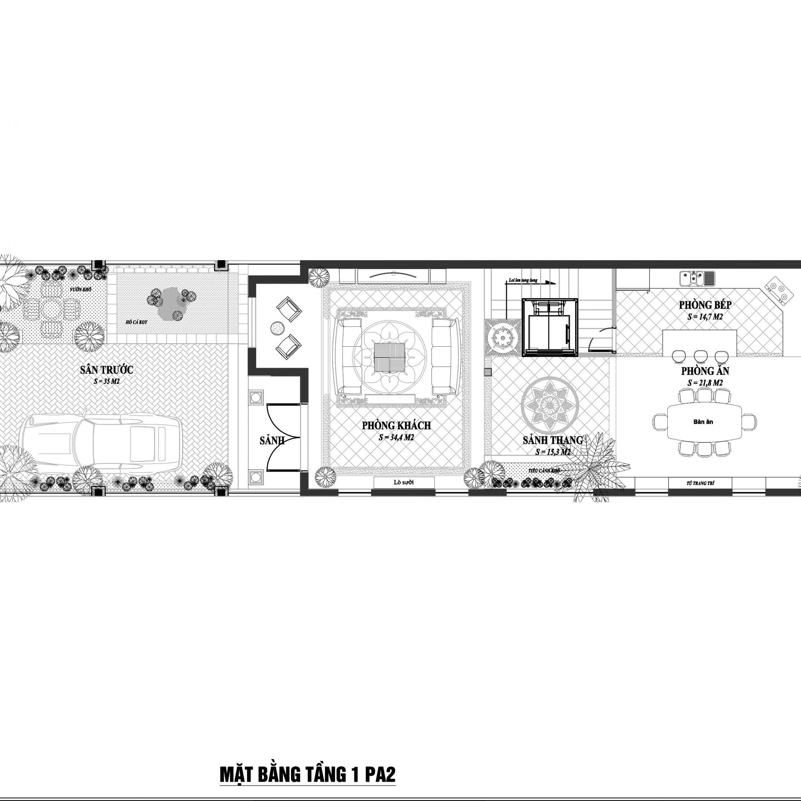 Không gian thiết kế xanh bao quanh căn nhà, kéo dài và ôm trọn căn biệt thự góp phần lớn tạo độ thoáng và phân chia không gian hợp lý hơn. Với các căn nhà trong thành phố, diện tích bao thường rất hẹp, gây ra một cảm giác khó chịu và khá tối tăm, thường sẽ là điểm xấu ảnh hưởng đến thẩm mỹ của căn nhà, tuy nhiên với thiết kế biệt thự tân cổ điển này, không gian bao quanh đủ rộng kết hợp hài hòa với không gian và tạo thêm điểm nhấn trong thiết kế cảnh quan biệt thự.