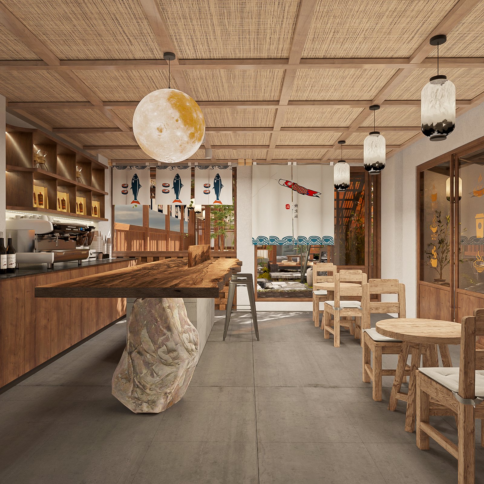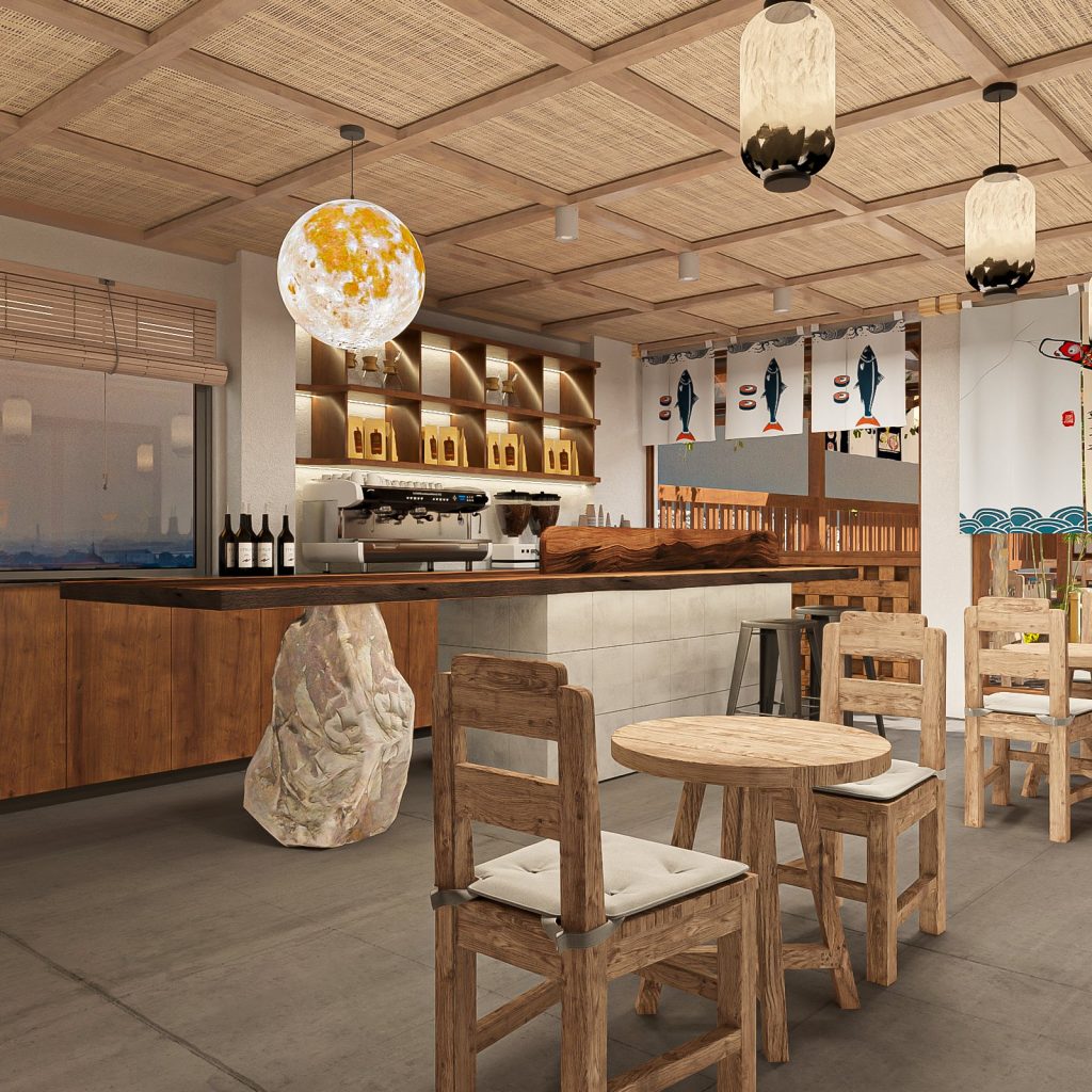 Tạo không gian riêng tư: Nhà hàng Nhật Bản thường có các phòng riêng để tạo sự riêng tư cho khách hàng. Bạn có thể sử dụng màn trắng, tấm gỗ hoặc cửa trượt để tạo ra không gian riêng tư cho các bàn ăn.