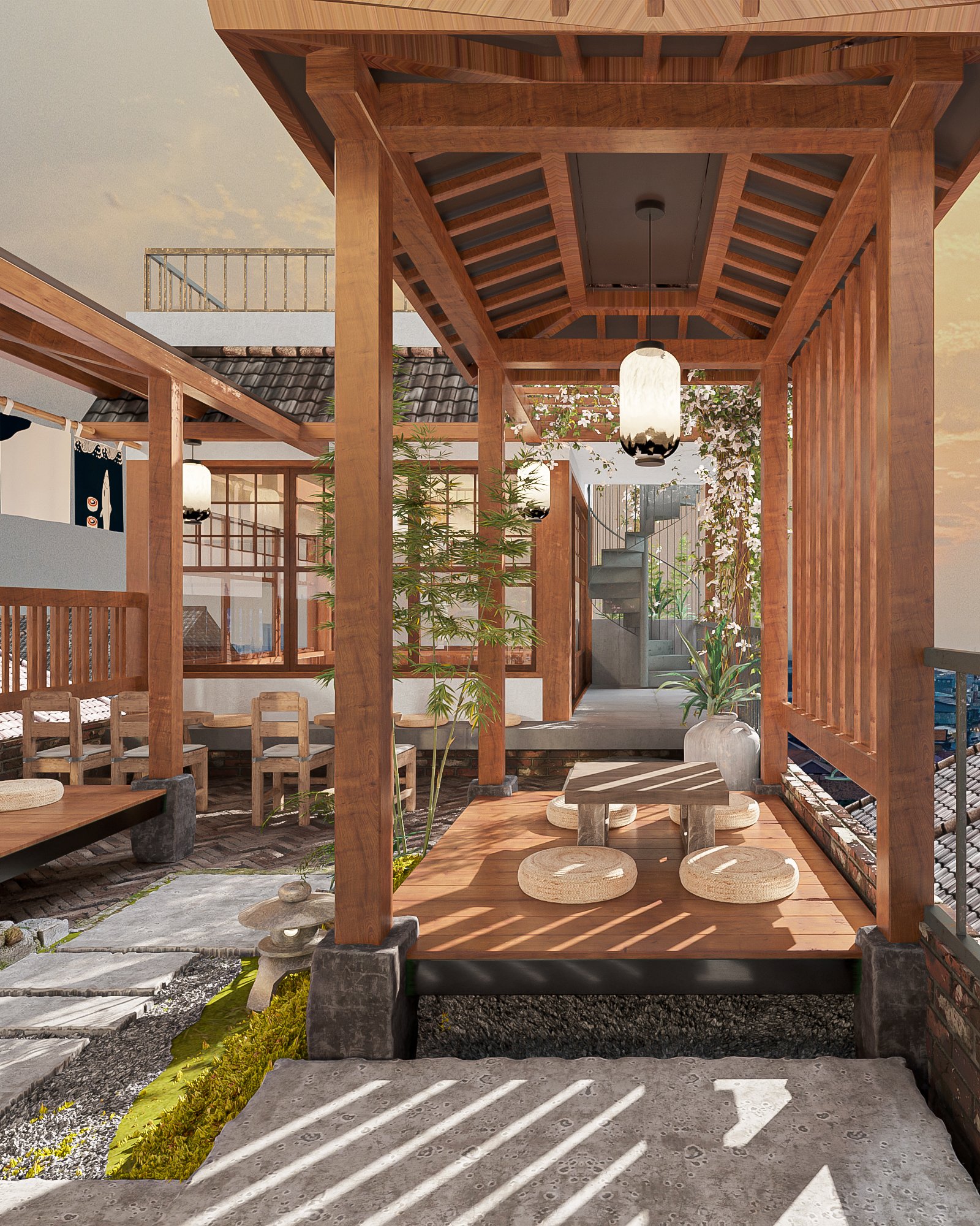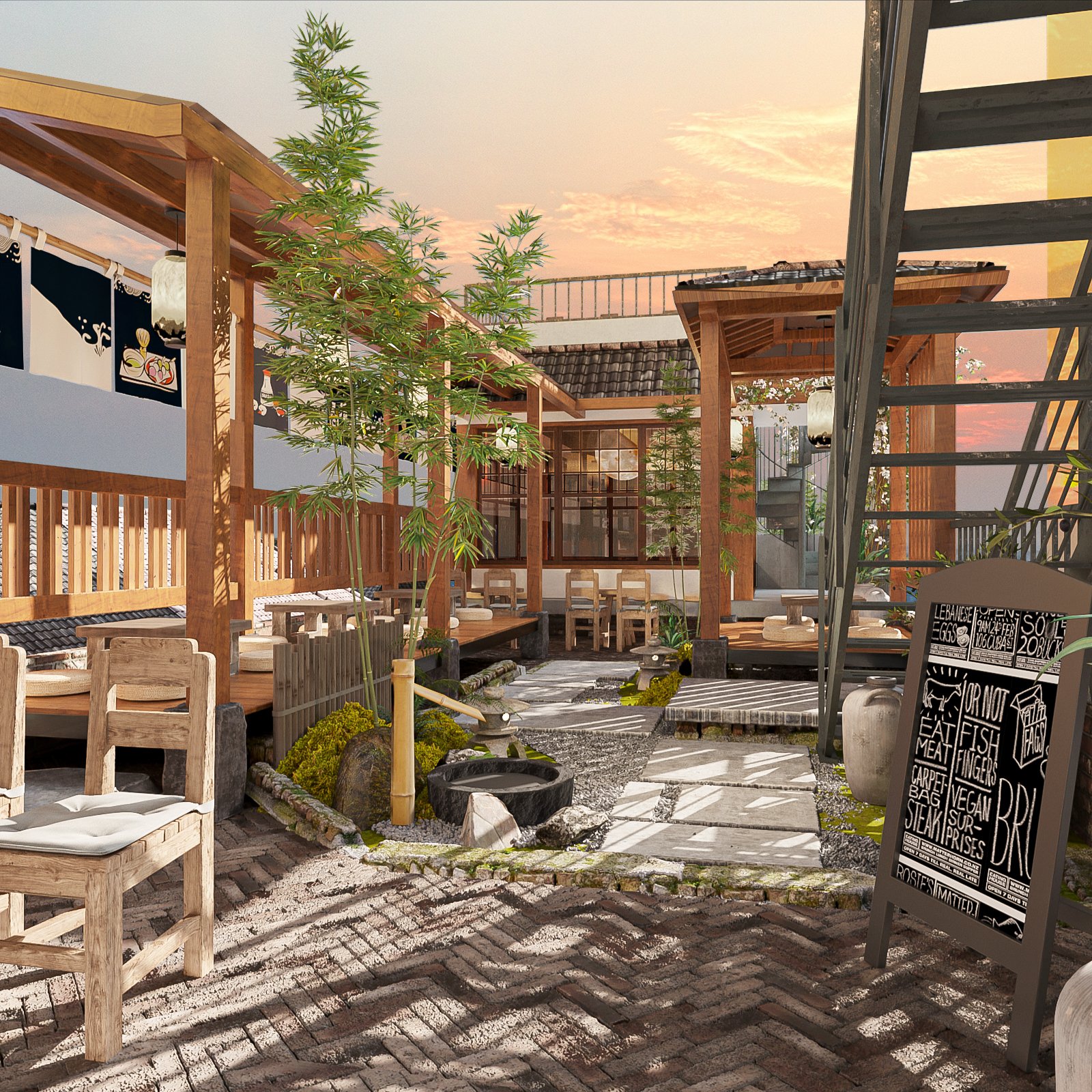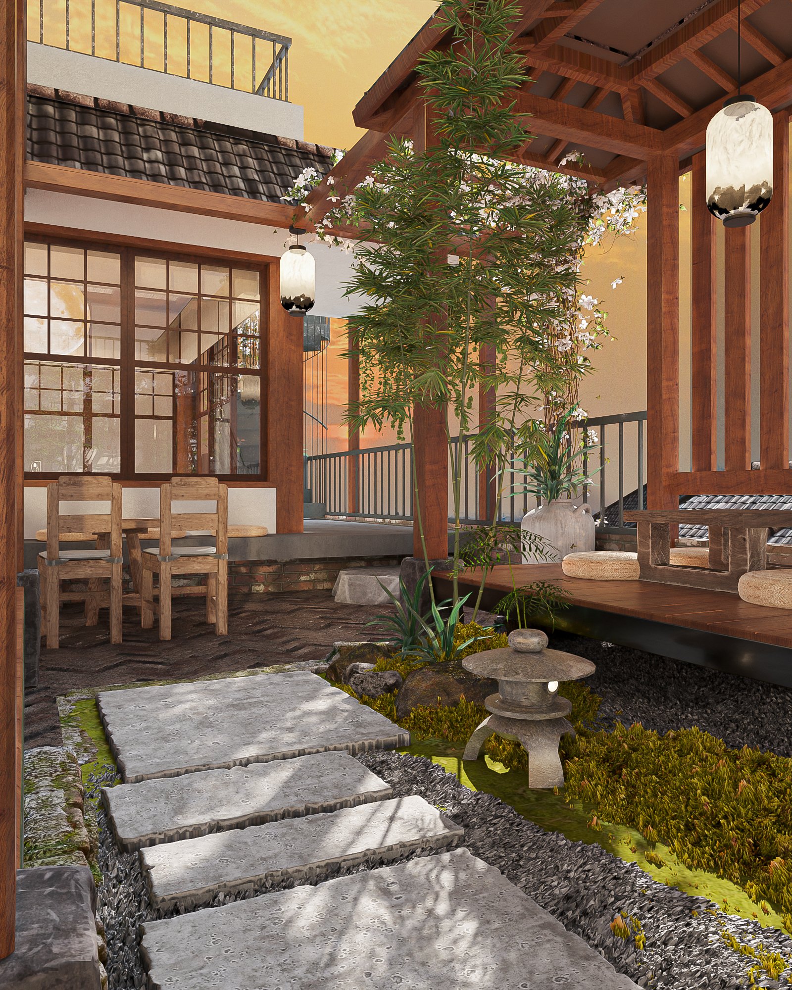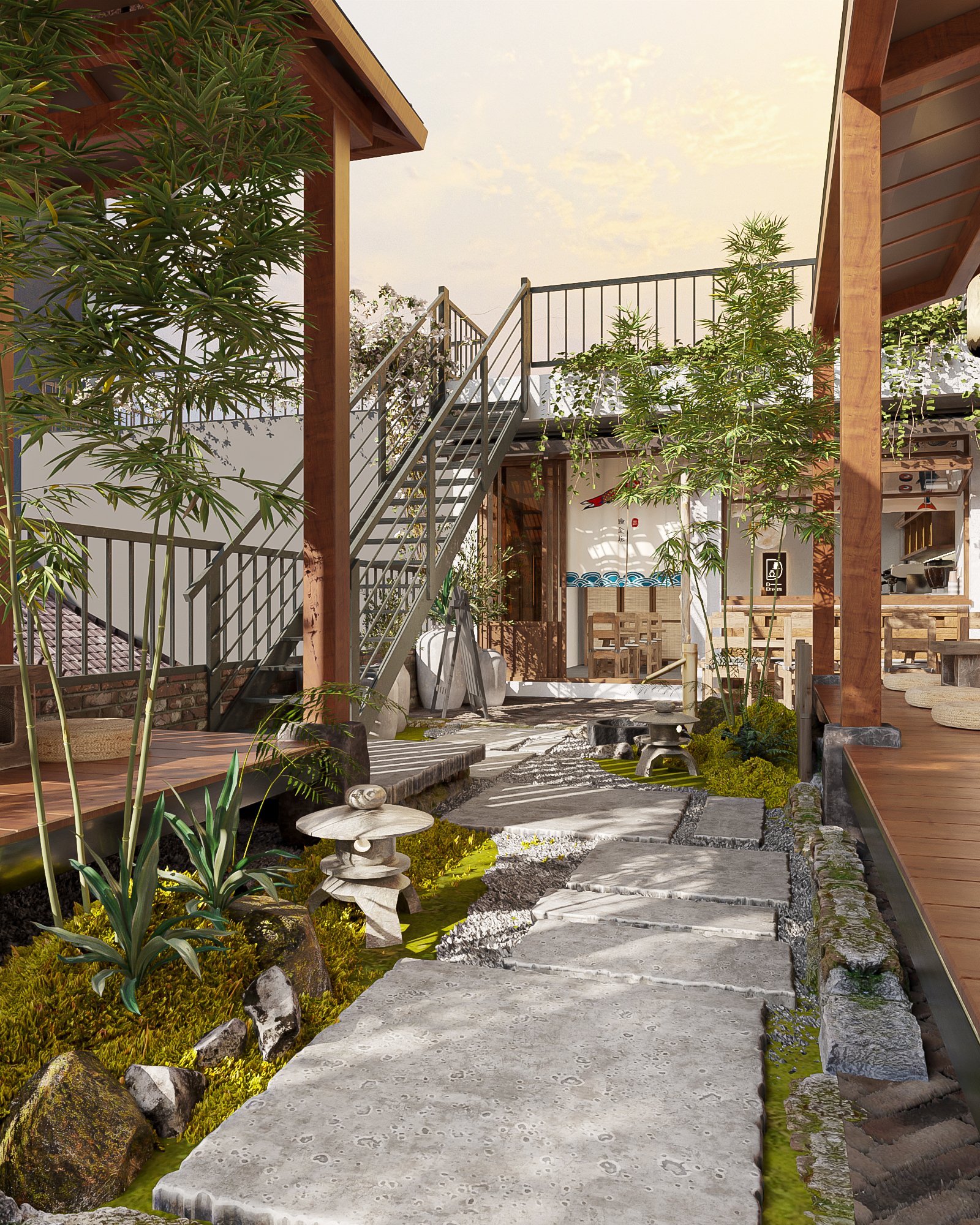 Thiết kế tường khuôn viên Nhật Bản: Một số nhà hàng Nhật Bản còn có khu vườn Nhật Bản nhỏ. Nếu điều này khả thi, hãy thêm một khuôn viên với cây cỏ, hòa mình với thiên nhiên.