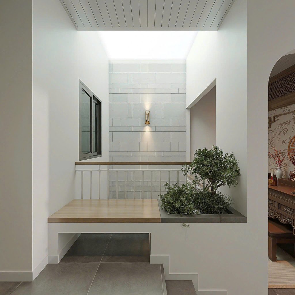 Với suy nghĩ của các kiến trúc sư của V-Home, ‘Giếng trời’ không chỉ đóng vai trò lấy sáng, nó còn là không gian chuyển tiếp – nơi kết nối ánh sáng & cảm xúc. Nó là một “góc dừng” thi vị. Một chiếc bục gỗ ấm áp kê bên cạnh mảng cây xanh nhỏ xinh, kết hợp cùng ánh sáng tự nhiên dịu nhẹ từ mái kính mờ — tạo nên một khoảng nghỉ chân đầy chất thiền giữa nhịp sống hiện đại.