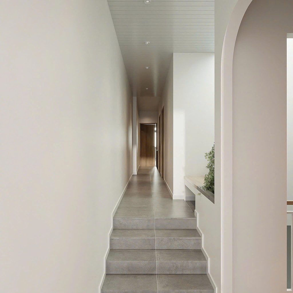 Không đơn thuần là một khoảng để xe, không gian nhỏ ấy cũng được chăm chút kỹ lưỡng để hòa hợp tổng thể. Tường trắng trang nhã, ánh sáng tự nhiên khuếch tán nhẹ qua mái kính mờ – mang lại sự nhẹ nhàng và sạch sẽ đến từng chi tiết.