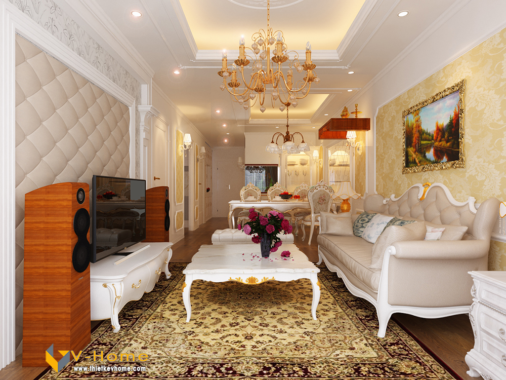 Thiết kế nội thất chung cư mang phong cách tân cổ điển là một trong những thiết kế khá phức tạp và đòi hỏi sự tỉ mỉ của cả chủ nhà lẫn kiến trúc sư. Với đặc điểm sử dụng nhiều đường cong cầu kỳ, chi tiết trang trí phức tạp, vì cậy các thiết kế tân cổ điển thường ít khi được lựa chọn cho các căn hộ chung cư còn hạn chế về mặt diện tích. Tuy nhiên chính cái Tôi cá tính cũng như mong muốn của gia chủ đã làm nên sự sáng tạo độc đáo cho căn hộ 2513 Tòa Ruby 3, Goldmark City 136 Hồ Tùng Mậu.