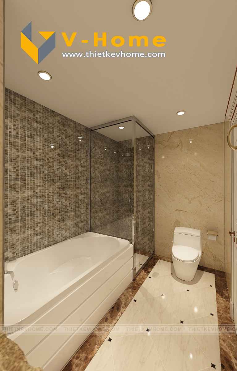 Thiết kế phòng WC phòng ngủ master sang trọng, đẳng cấp với các thiết bị vệ sinh tiên tiến, hiện đại, với không gian được thiết kế thi công rộng rãi, sạch sẽ và trang trọng.