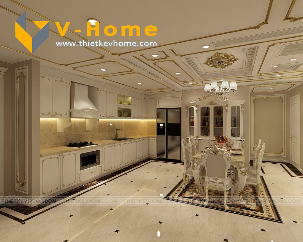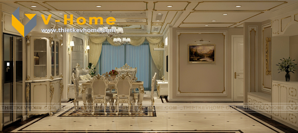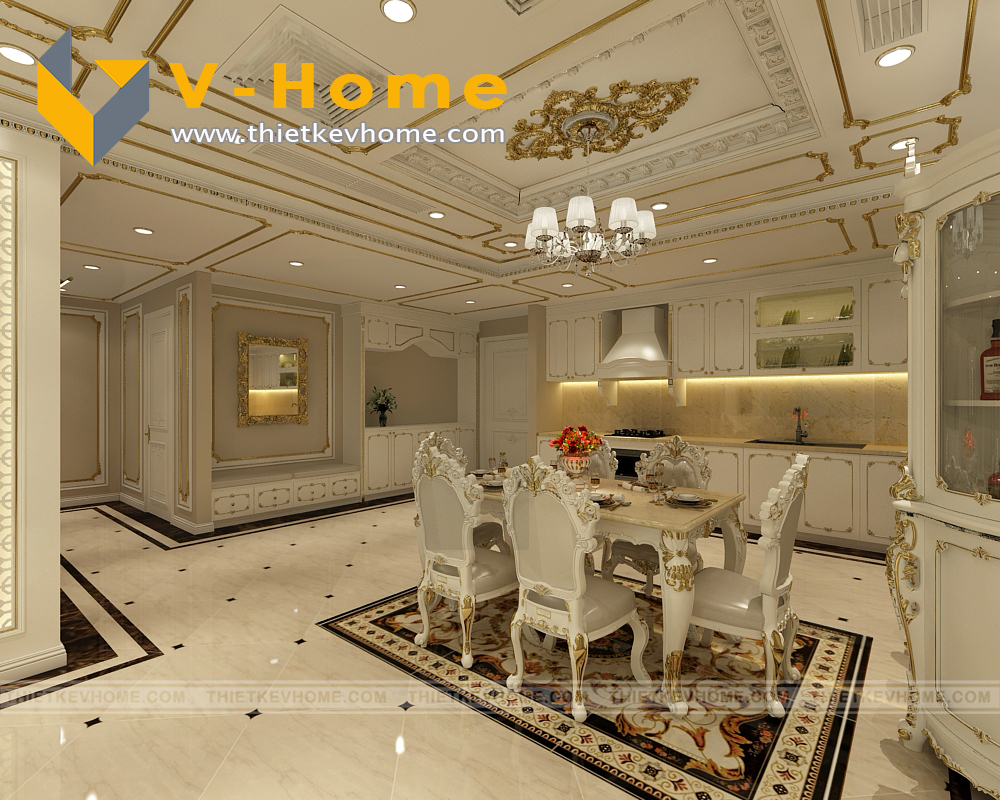 Điểm xuyết không gian nội thất là màu trắng tinh tế kết hợp với sắc vàng của hoàng gia. Thiết kế nội thất với tông màu sáng luôn mang lại cảm giác thoải mái, rộng rãi và dễ chịu cho gia chủ cũng như khách tới chơi nhà.