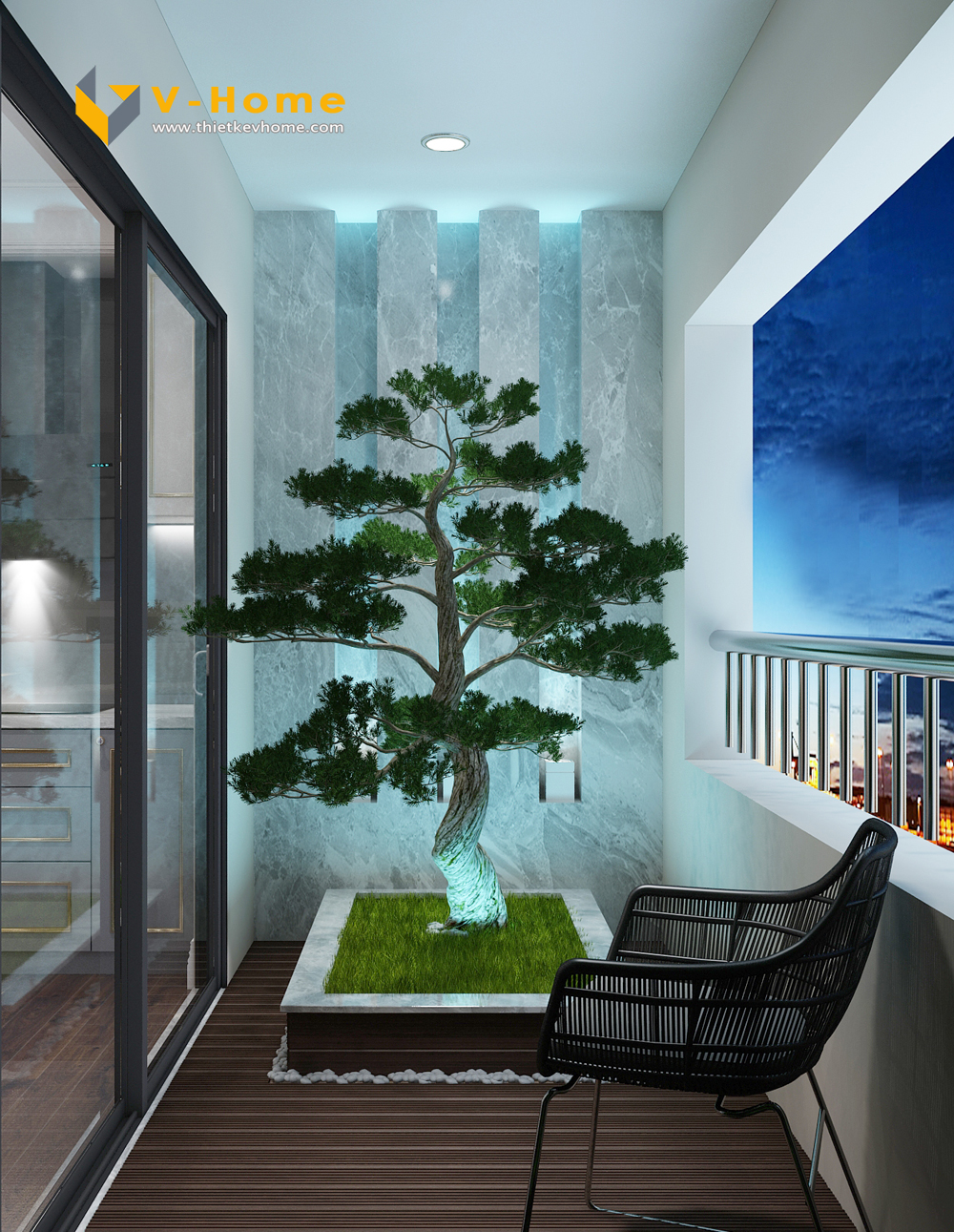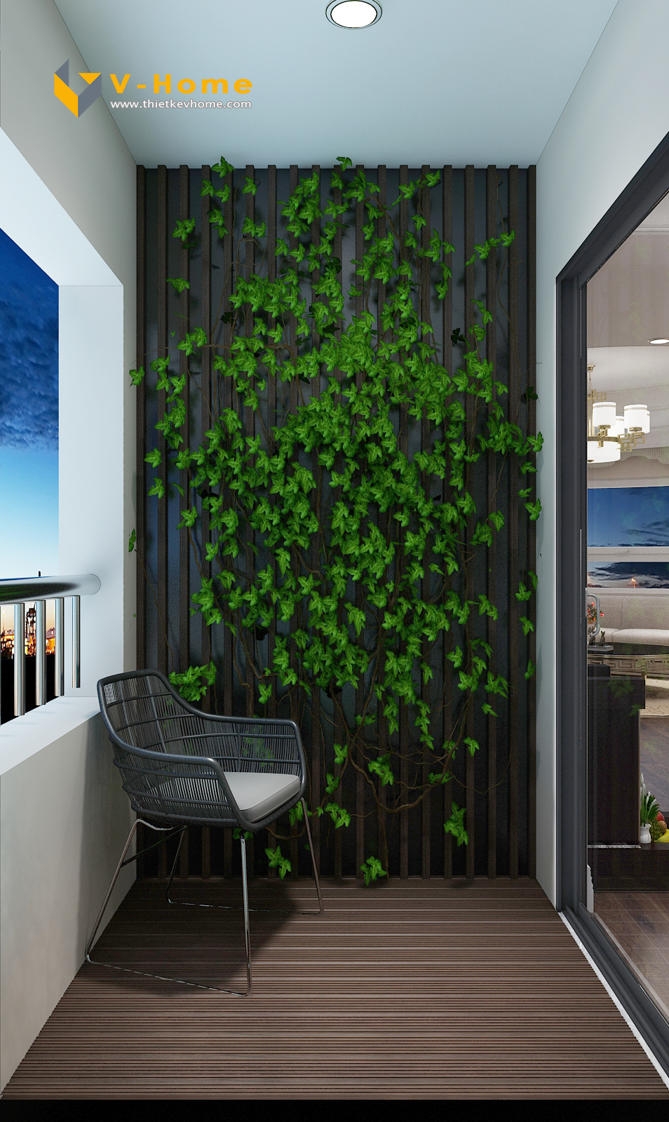 Thiết kế ban công độc đáo giúp gia chủ có thể ngắm nhìn thành phố từ trên cao, mang lại cảm giác thư thái và dễ chịu.