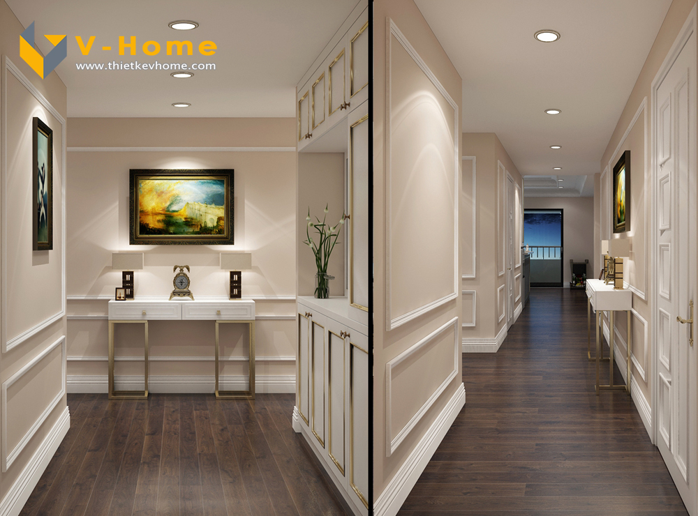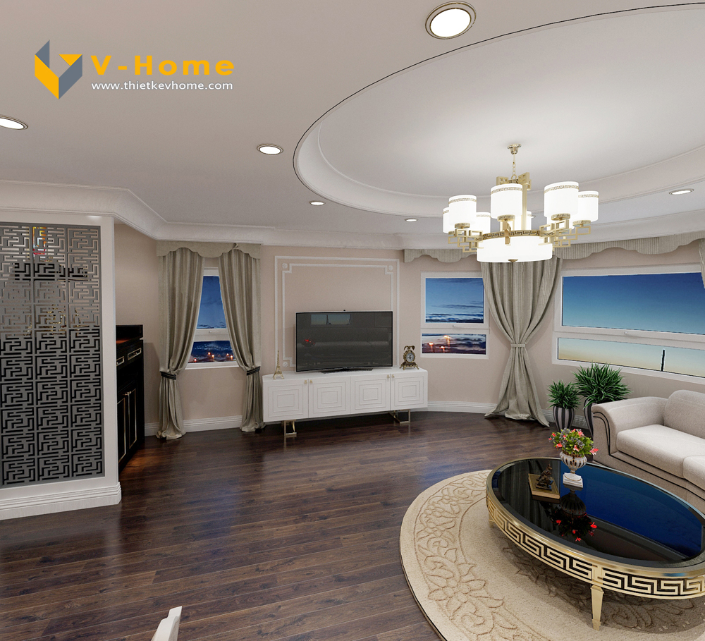 Thiết kế nội thất tân cổ điển chung cư 3 phòng ngủ với tông màu be sáng, không gian sống trở lên nhẹ nhàng và lịch sự nhưng không kém phần sang trọng, đẳng cấp. Không gian mang lại cho gia chủ cảm giác tươi mới, tràn đầy nhựa sống.