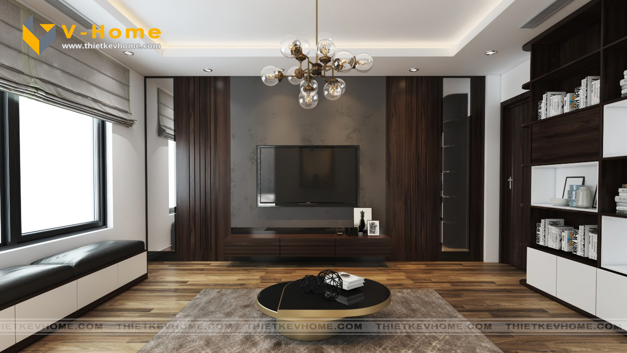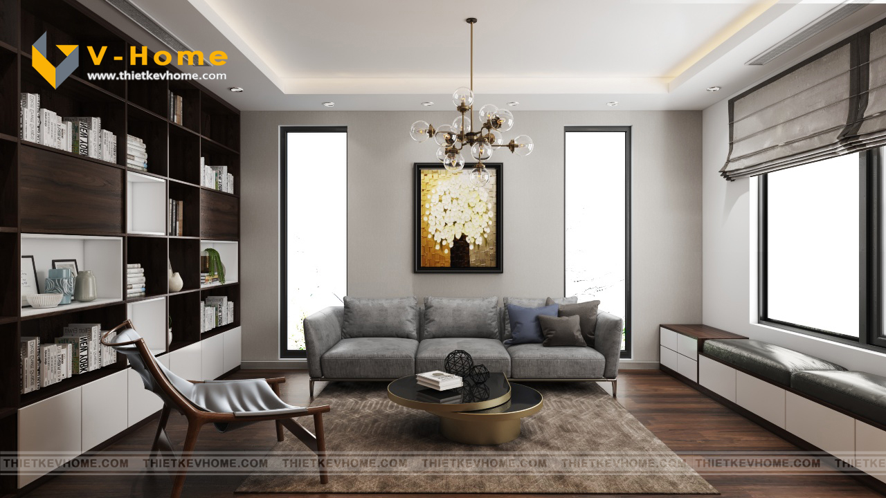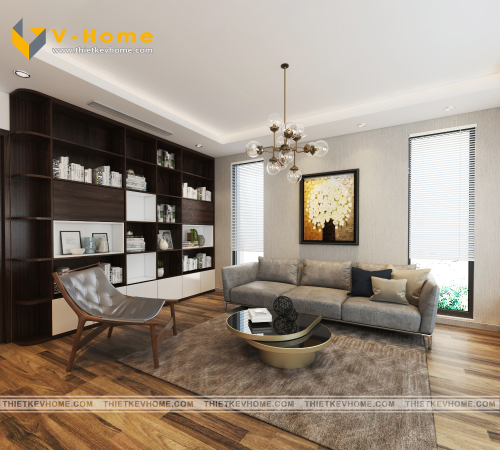 Nội thất phòng khách sang trọng và đẳng cấp với bộ ghế sofa được làm từ nỉ Hàn Quốc cao cấp. Sự kết hợp hài giữa vật liệu gỗ và đá lát nền nhà đã mang đến không gian sống hoàn mỹ cho gia chủ. Không gian phòng khách được thiết kế với các ô cửa kính lớn, tận dụng tối đa ánh sáng tự nhiên, mang tới sự choáng ngợp, sáng sủa.