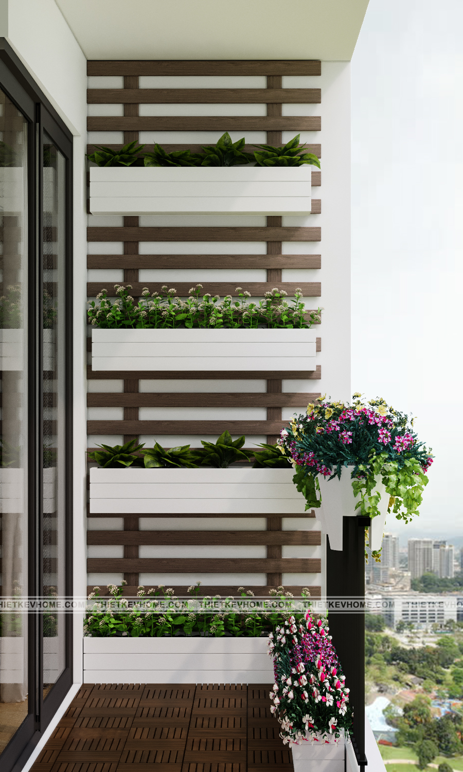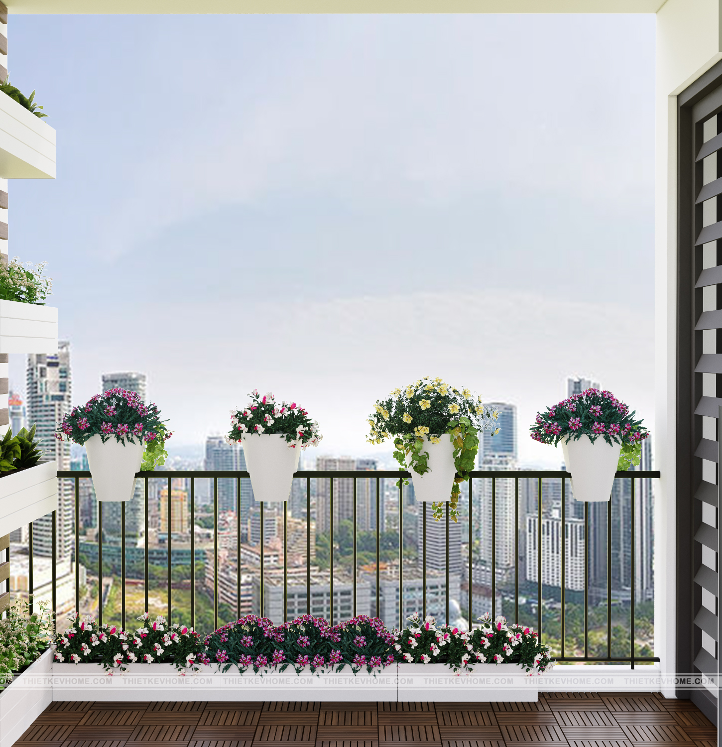 Thiết kế ban công mang lại vẻ đẹp tràn đầy nhựa sống cho căn chung cư ở trên cao. Còn gì có thể thư giãn hơn khi mở cửa ra ban công, hít hà không khí trong lành, ngắm nhìn cây non đâm chồi nảy lộc, trăm hoa đua nở. Ban công là nơi gia chủ có thể ngắm nhìn thành phố từ trên cao mà cũng là nơi mang lại sức sống cho ngôi nhà.