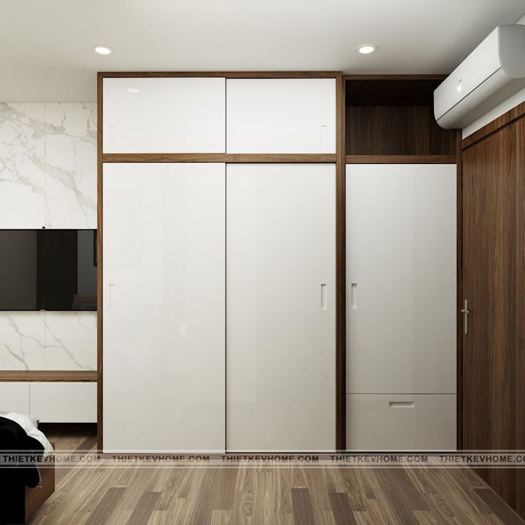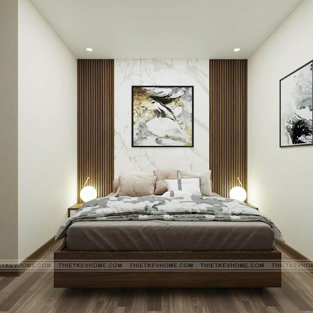 Phòng ngủ master được sử dụng thiết kế theo phong cách hiện đại, mang đến cho căn phòng những nét khỏe khỏe khoắn, sức hút qau từng điểm nhấn thú vị trong căn phòng ngủ. Giường ngủ được đặt chính giữa căn phòng, tâm điểm nội tâm trong phòng ngủ. Đầu giường thiết kế tạo điểm nhấn thú hút cho căn phòng nội thất hiện đại. Thiết kế đối diện giường ngủ tivi treo tường tiết kiệm diện tích cho phòng ngủ. Sử dụng bàn trang điểm với nội thất thông minh, tủ quần áo cao sát tường nhằm mang đền nhiều diện tích lưu trữ cho gia chủ được nhiều hơn. Hệ thống đèn điện màu vàng được trở nên với ánh sáng vàng, ấm áp.