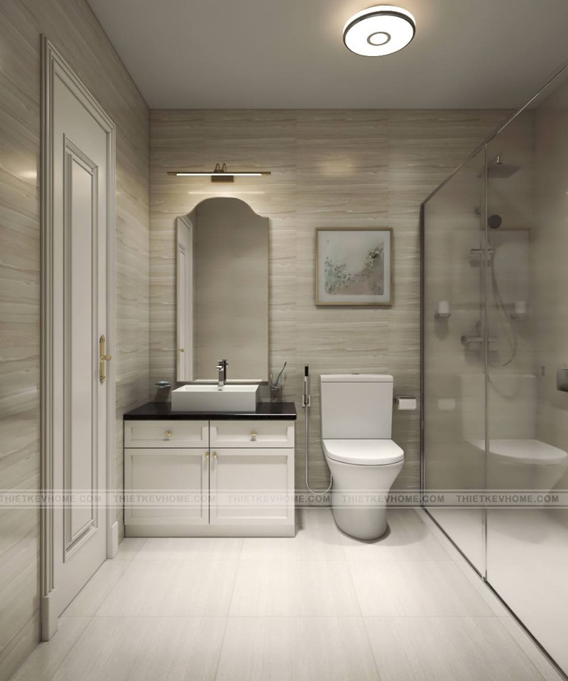 Thiết kế nội thất phòng tắm đa chức năng, không gian được thiết kế khoa học, hợp lý. Nội thất phòng tắm được sử dụng hiện đại, mang đến một không gian thiết kế đơn giản những vẫn toát lên được sự sang trọng.