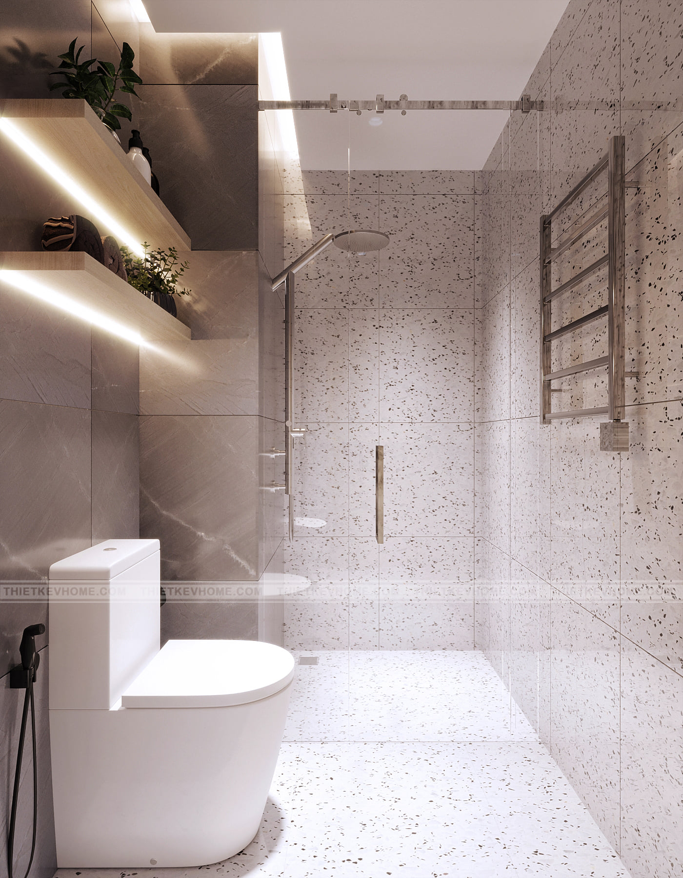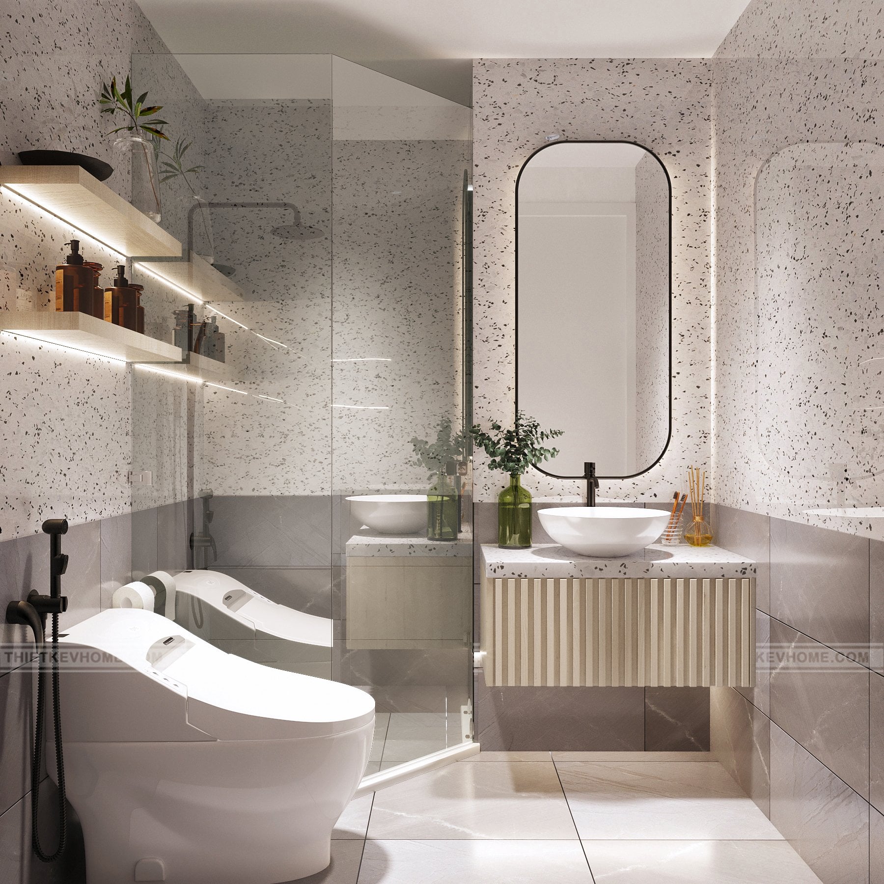 Nhà vệ sinh với các thiết bị hiện đại, đầy đủ công năng và tiện nghi sử dụng.