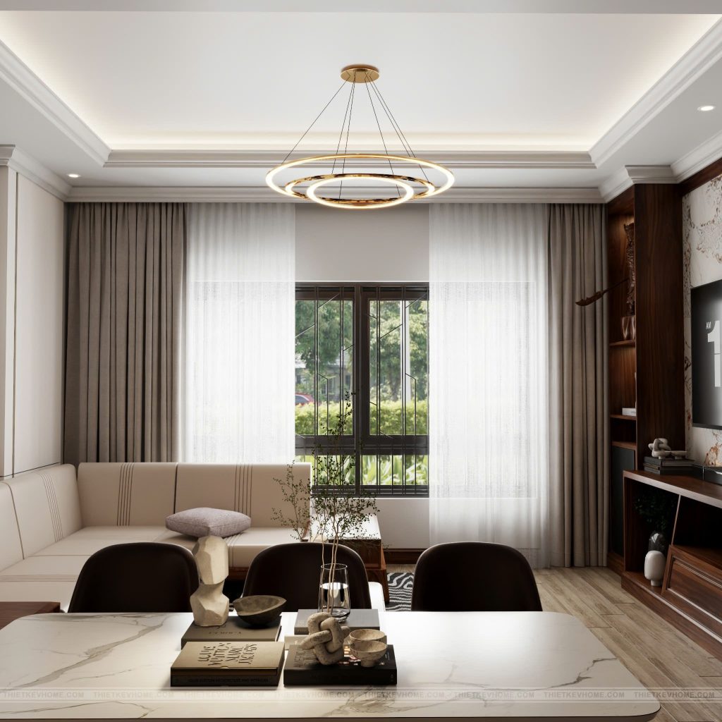 Căn nhà được V-Home giới thiệu hôm nay là một ví dụ điển hình của phong cách ‘Hiện đại Sang trọng’ (Modern Luxury) pha trộn với nét ấm cúng của nội thất gỗ tự nhiên (gỗ Óc Chó – Walnut). Đây là phong cách đang rất được ưa chuộng tại Việt Nam bởi nó vừa thể hiện được đẳng cấp của gia chủ, vừa giữ được sự gần gũi, tiện nghi.