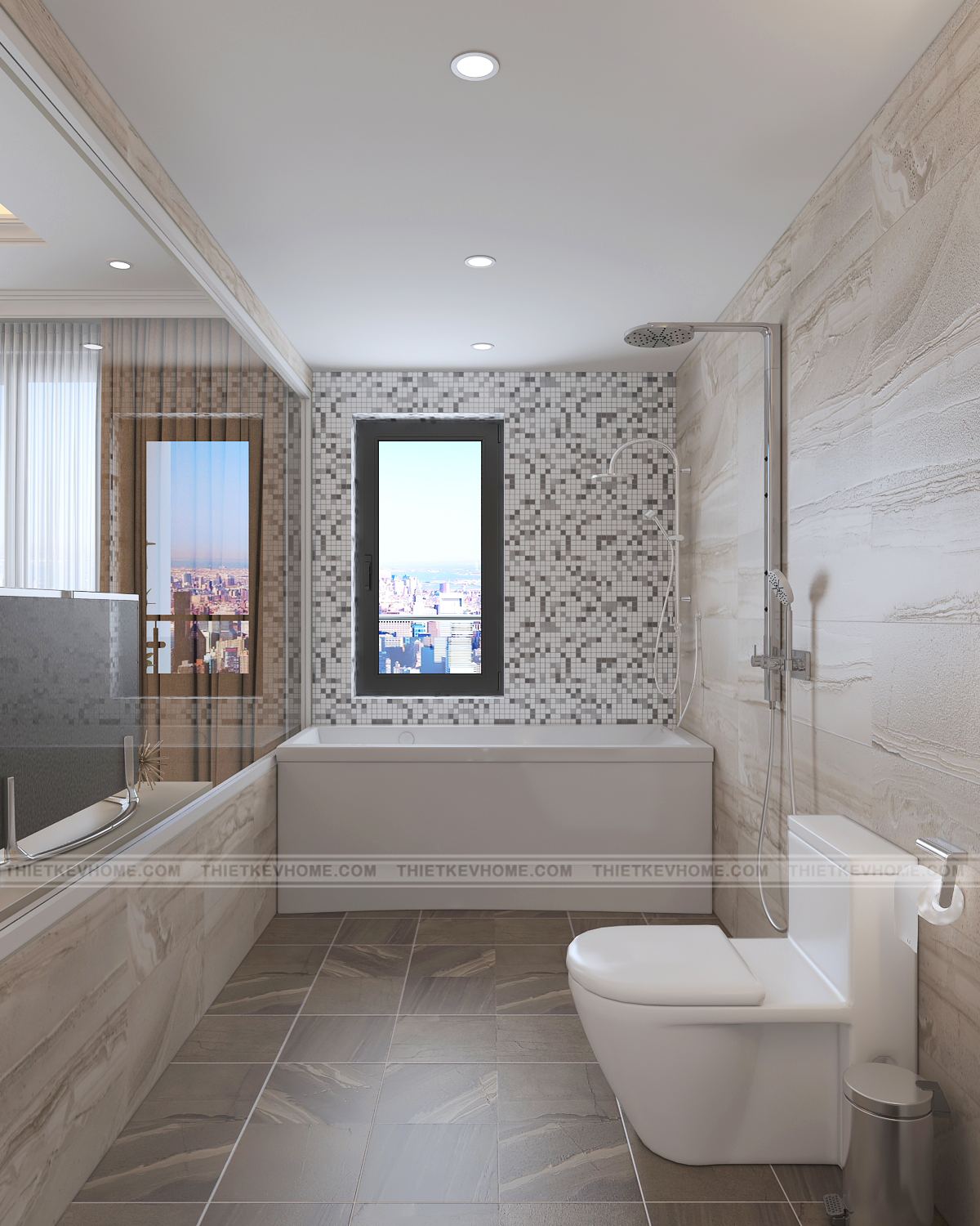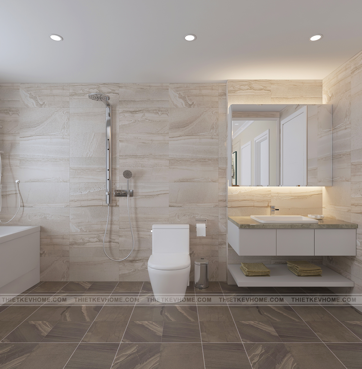 Thiết kế phòng wc phòng ngủ master sang trọng, hiện đại và đẳng cấp. Phòng tắm trang bị đầy đủ cả vòi hoa sen và bồn tắm giúp gia chủ có thể thư giãn sau một ngày làm việc mệt mỏi.