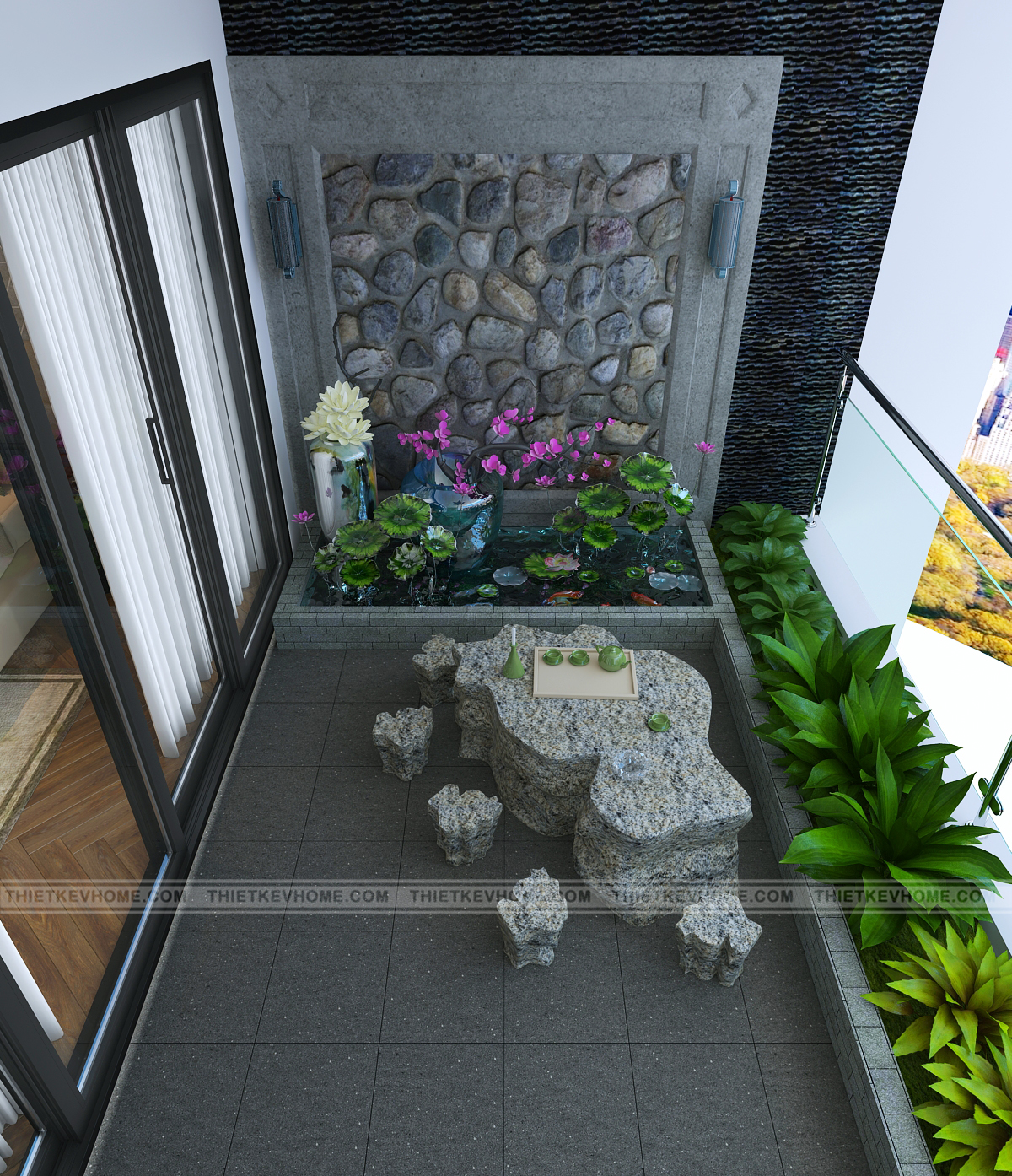 Thiết kế ban công tầng 2 trở thành nơi thư giãn cho chủ nhân của căn hộ. Gia chủ có thể ngắm nhìn phố phường từ trên cao, cùng nhau thưởng thức ly trà đá, hàn huyên tâm sự về chuyện đã qua, nói về chuyện sẽ tới, vun đắp tình cảm.
