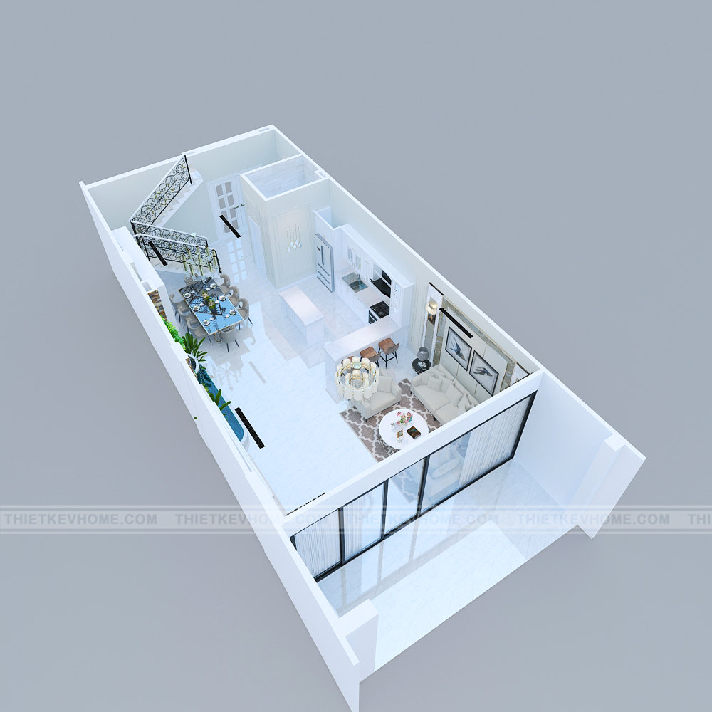 Thiết kế nội thất tầng 1: Phòng khách – bếp