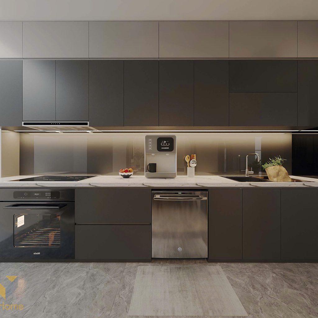 Chính bố cục ‘Bếp chữ I’ đã được các kiến trúc sư của V-Home sử dụng tận dụng toàn bộ chiều dài tường, tạo sự gọn gàng và tối ưu diện tích. Phân khu hợp lý: Khu bếp nấu và rửa bát liền kề, thuận tiện di chuyển. Thiết kế chú trọng tính công năng nhưng vẫn đảm bảo yếu tố thẩm mỹ, xứng đáng là “trái tim” của ngôi nhà.