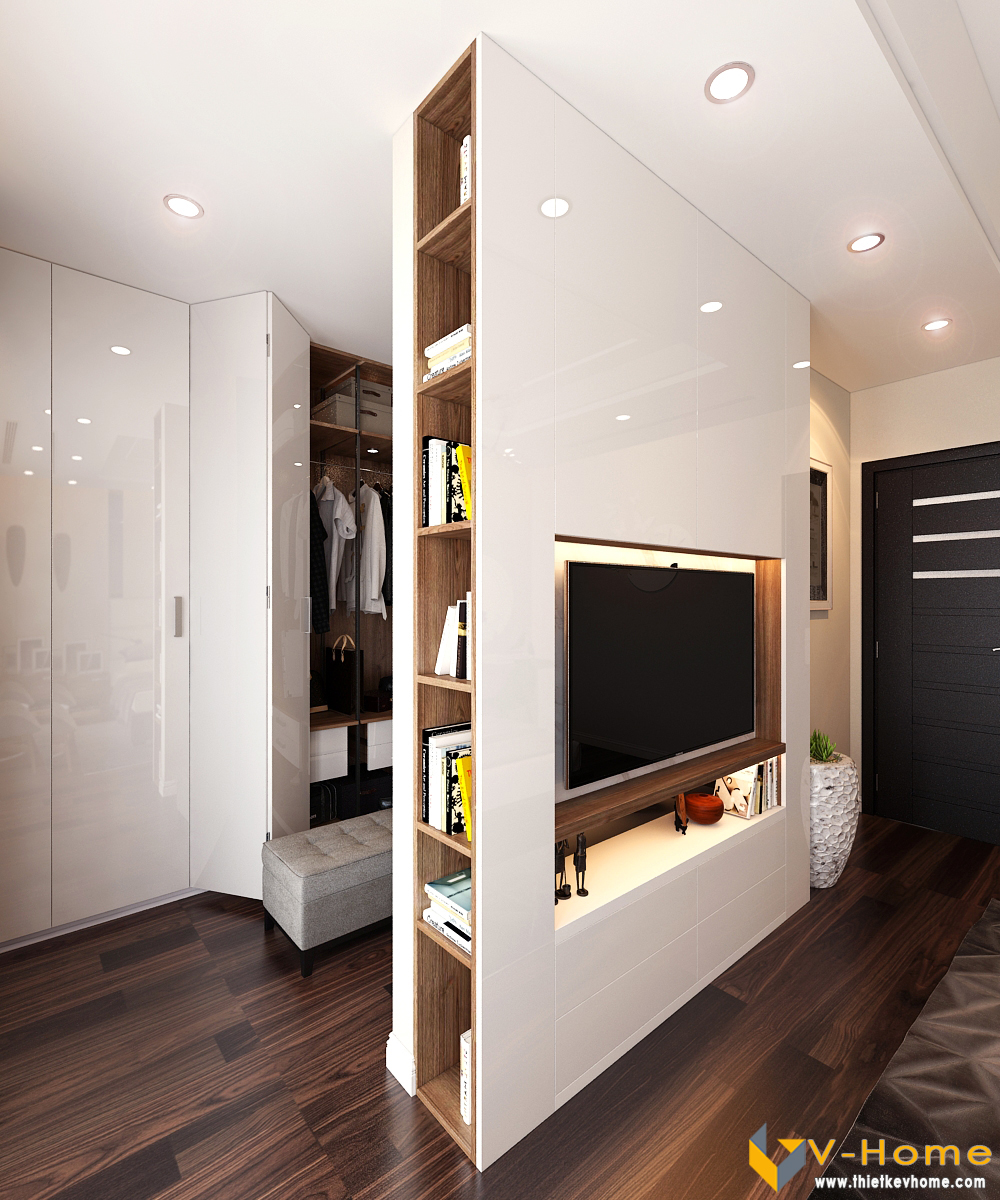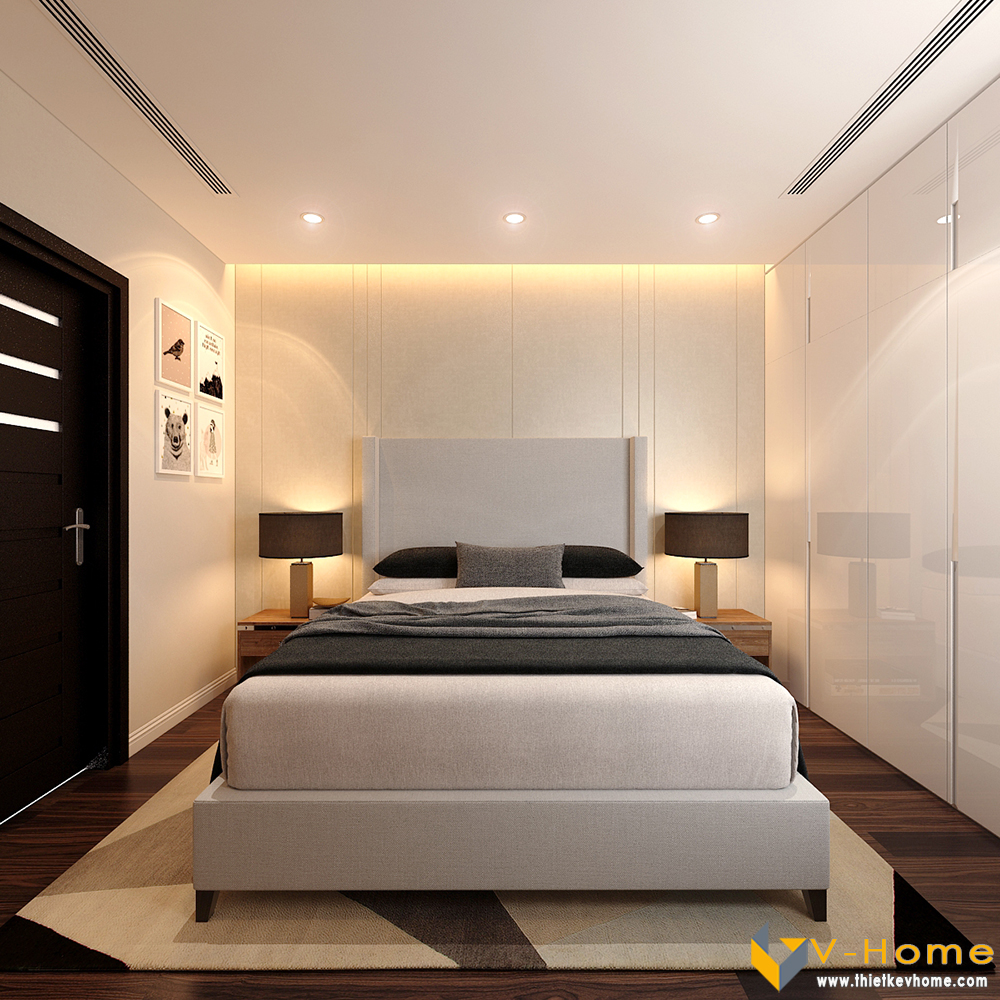 Phòng ngủ với sắc trắng tinh khiết mang đến một không gian trang nhã, thư thái, giảm stress sau những ngày làm việc căng thẳng. Cả gian phòng như bừng sáng, vươn vai với ánh nắng mặt trời qua khung cửa sổ. Hơn nữa, màu trắng rất phù hợp với gia chủ mang mệnh kim giúp gia chủ gặp nhiều may mắn, tài lộc cũng như sức khỏe.