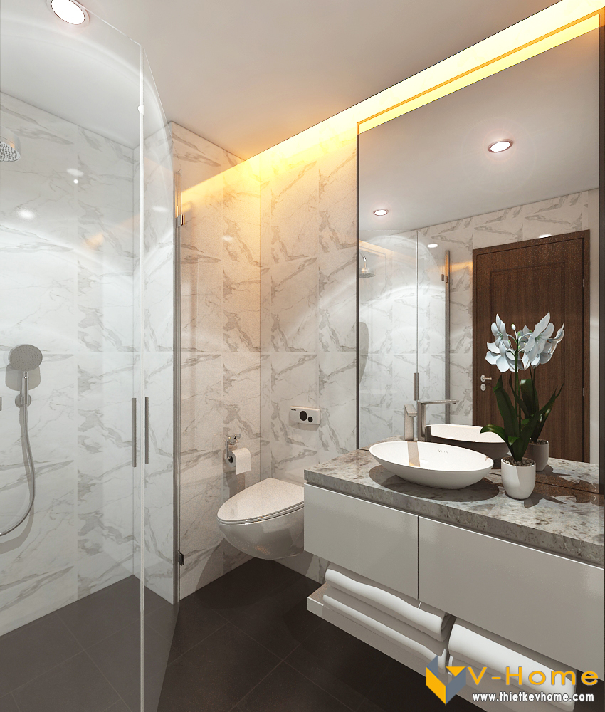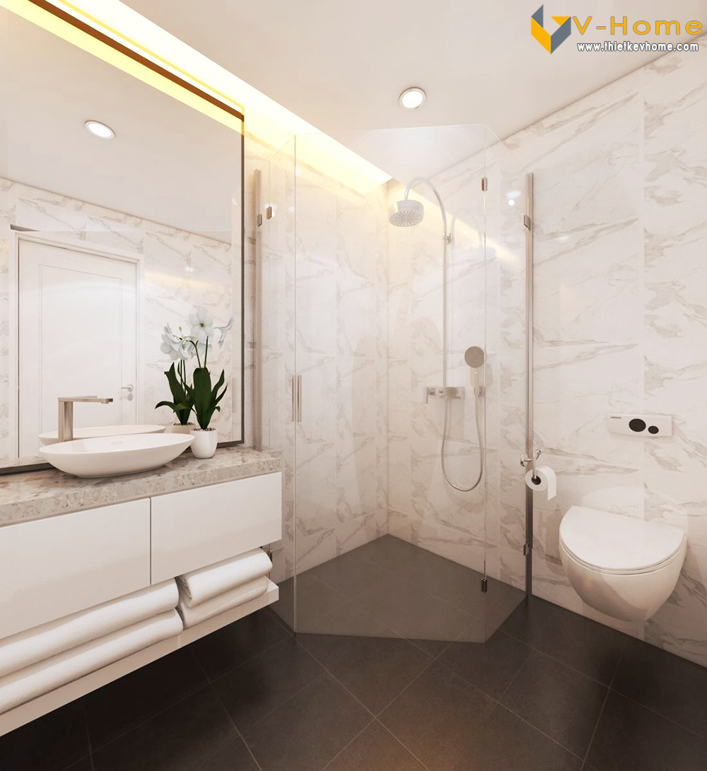 Các nhà tắm của căn shophouse cũng được thiết kế rất sang trọng tạo cảm giác thoải mái cho gia chủ mỗi nghi vào tắm rửa.