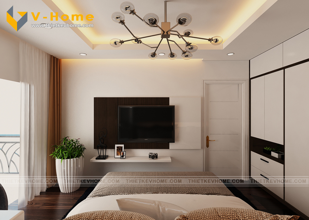Thiết kế phòng ngủ master với khung cửa kính lớn nhìn ra ban công, tận dụng tối đa ánh sáng tự nhiên giúp không gian trở lên thoáng mát và rộng rãi.